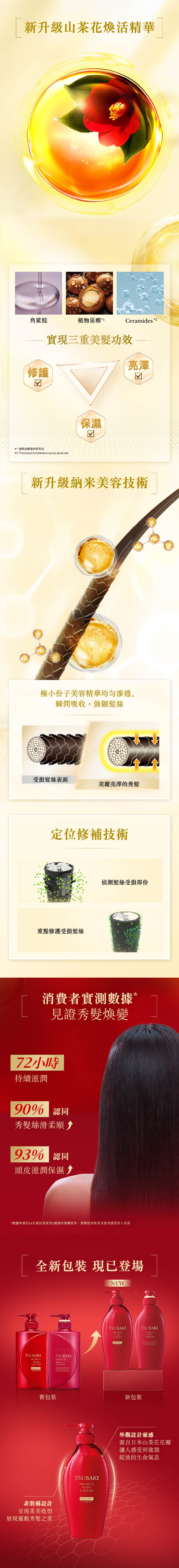 皇牌煥髮修護配方:山茶花油、Ceremide、澳洲堅果油、蜂皇漿、角鯊烷等滋養成分深入髮芯、高效賦活